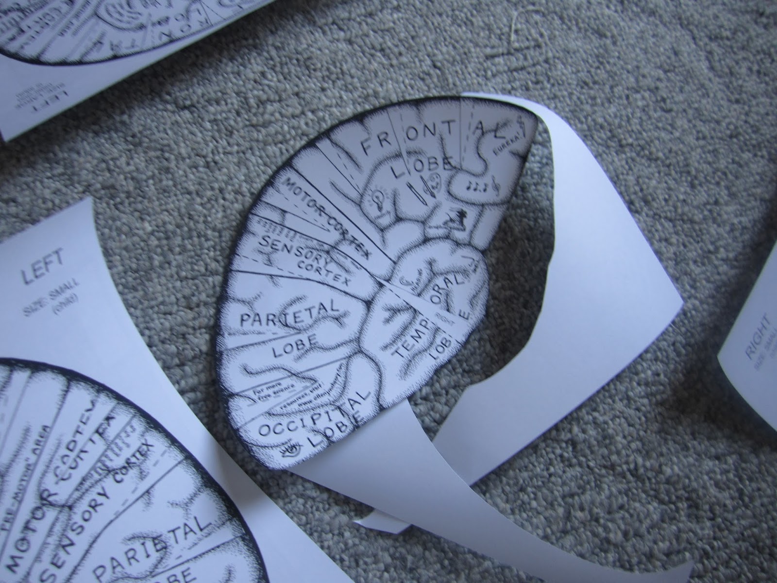 my little brain model.I thought this was a really cool idea and a fun way to learn the different parts of the brain.Later on Charlie colored in the sections and will be filling out a blank brain for a test.